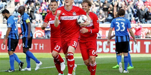 Chicago Fire: Sanchez, B. Vincent, J. Kappelhof, J. Corrales, D. McCarty, B. Bronico, B. Schweinsteiger, M. Adams, N. Nikolic, A. Gordon, L. Solignac